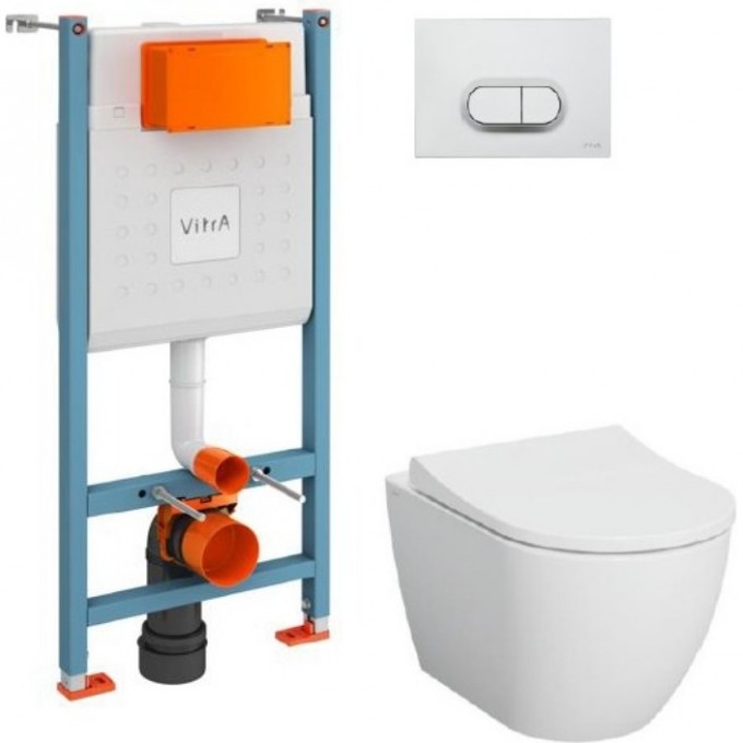 Инсталляция VITRA с безободковым унитазом VITRA MIA ROUND тонкое сиденье микролифт клавиша цвет матовый хром 9856B003-7200
